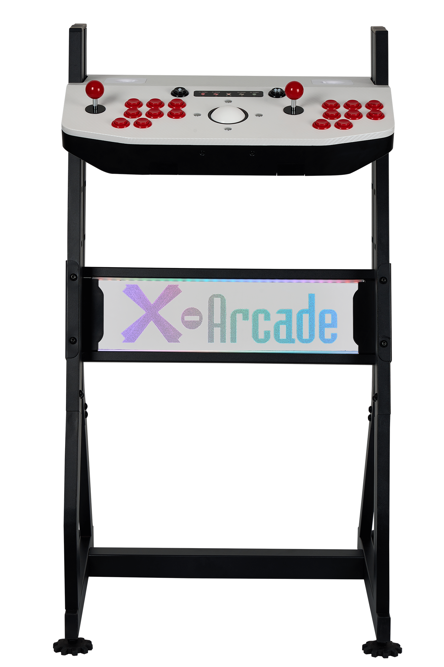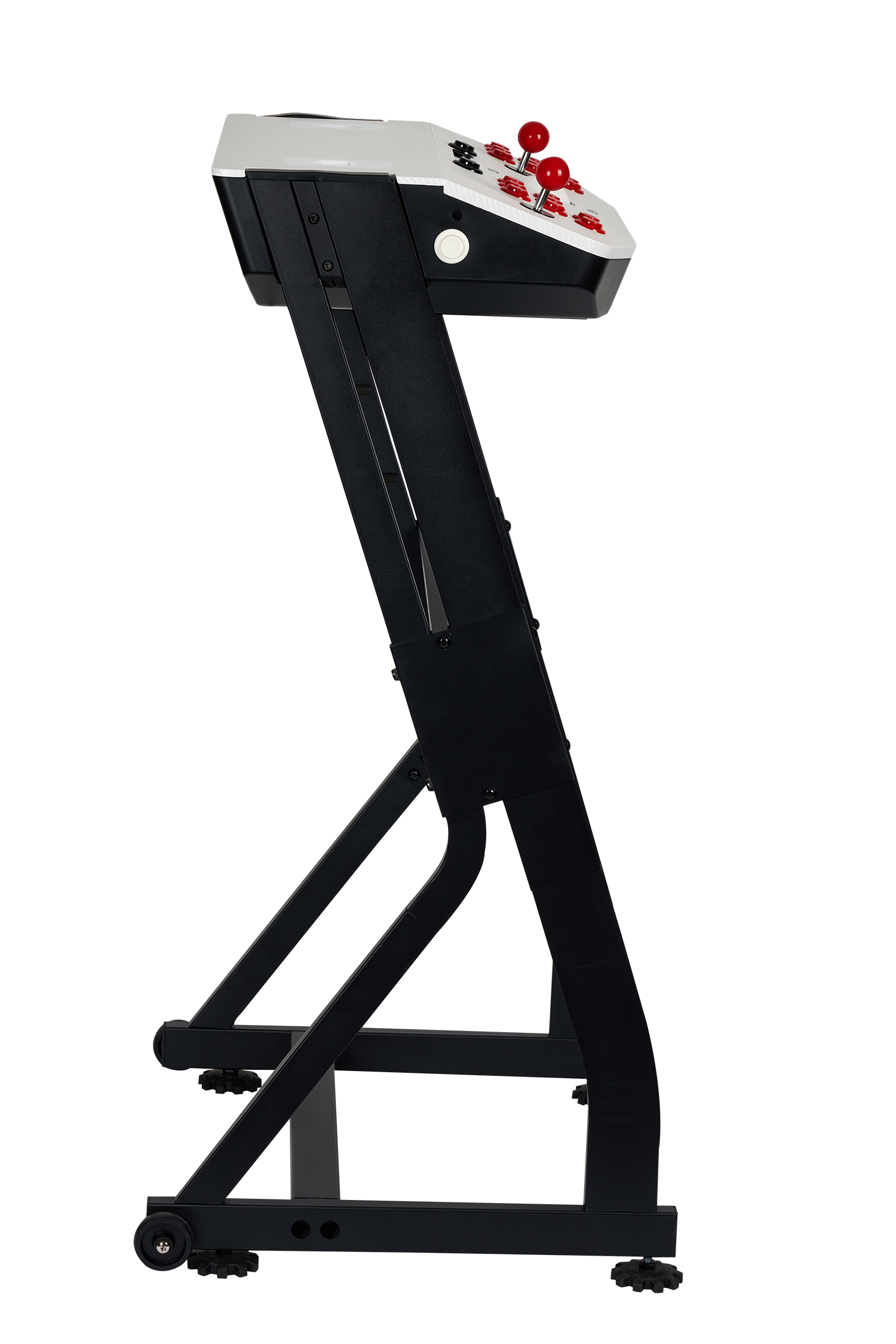 Getting started with your Arcade2TV-XR is straightforward, thanks to the detailed assembly instructions provided. The control unit easily attaches to the adjustable pedestal, and connecting to your gaming devices is a breeze with the included cables and adapters. The pedestal is equipped with wheels for easy mobility, and the leveling feet ensure stability on any surface.