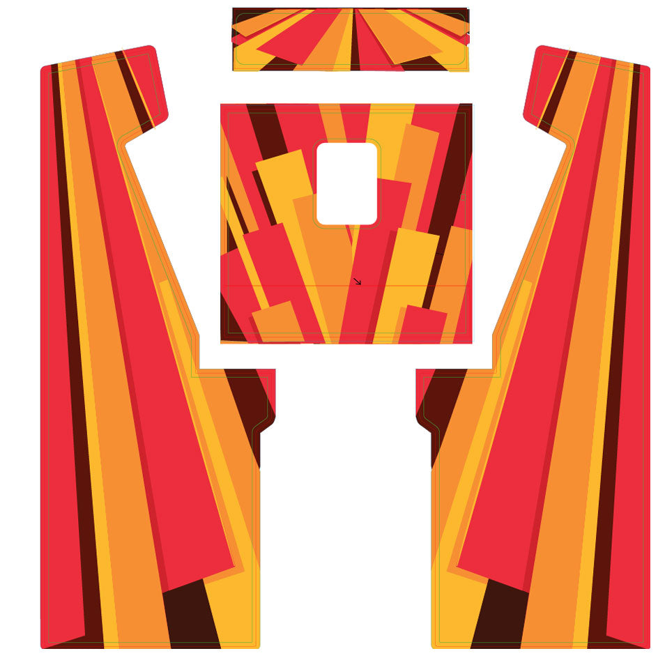 If you don't like the standard black authentic sides, you have two options for artwork: Choose from5 great artwork designs from San Francisco-based artist Josh EllingsonOr you create you own custom artworkWe will print and apply anything you designon the entire sides, marquee above monitor and area surrounding the coin door. You can download the template here. Adds 2-4 weeks to your order, we do not provide any graphic design services.